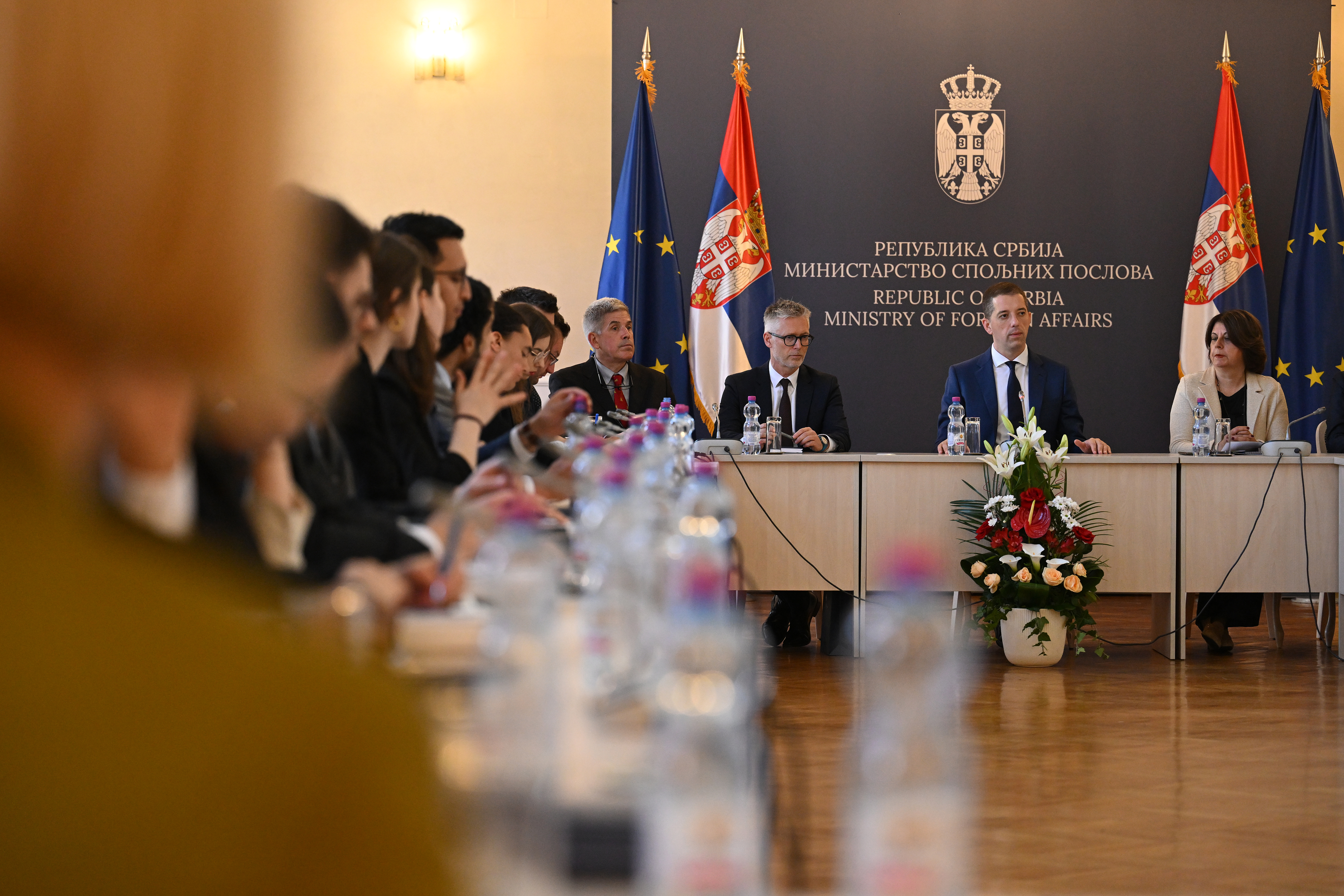 У разговору са групом професора и студената из чак 16 земаља, министар Ђурић је представио приоритете српске спољне политике, нагласивши да пуноправно чланство у ЕУ остаје наш стратешки циљ.